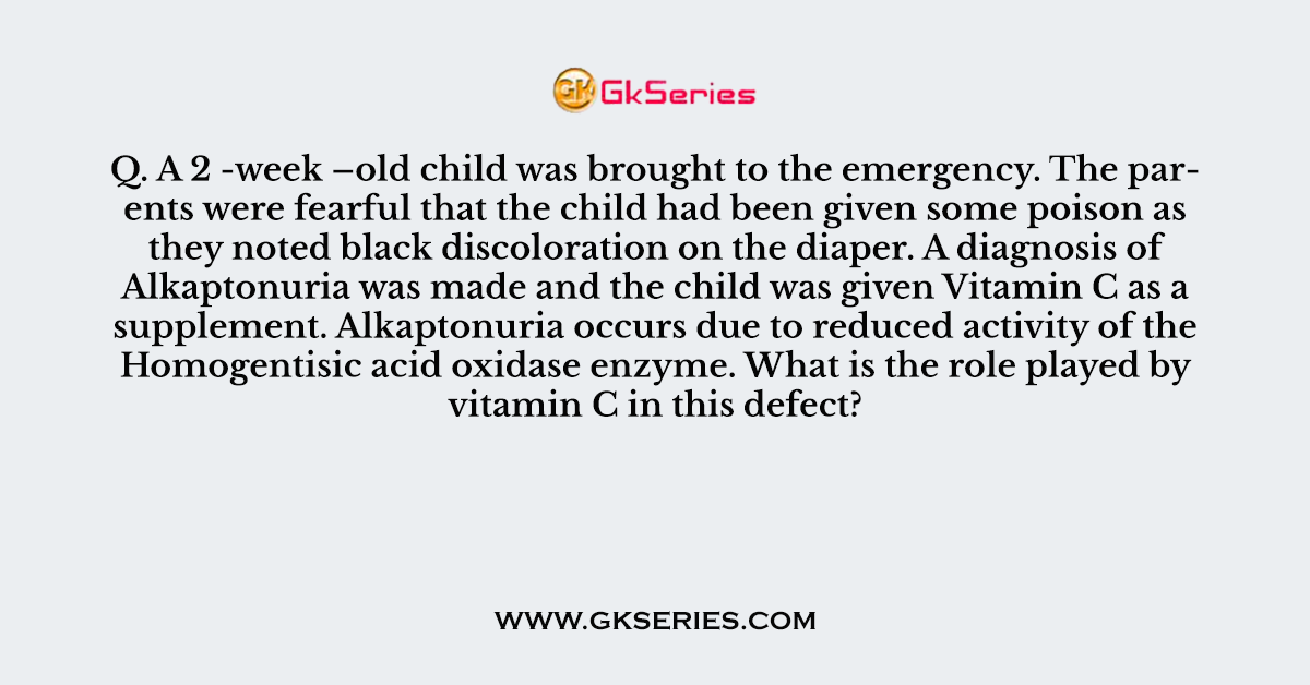 Q. A 2 -week –old child was brought to the emergency. The parents were fearful that the child had been given some poison as they noted black discoloration on the diaper. A diagnosis of Alkaptonuria was made and the child was given Vitamin C as a supplement. Alkaptonuria occurs due to reduced activity of the Homogentisic acid oxidase enzyme. What is the role played by vitamin C in this defect?