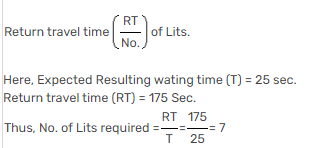 Q. A 25 storeyed building has 5 lifts. The resulting waiting time is 35 sec and ‘Return Travel Time’ is 175 sec. The number of lifts required for reducing waiting time to 25 sec, without increasing the lift speed, is