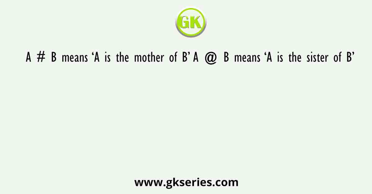 A # B means ‘A is the mother of B’ A @ B means ‘A is the sister of B’