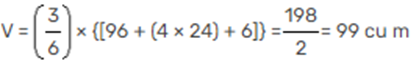 Q. A depressed portion of a land is identified by three closed contours, as shown in the figure below. The area bounded by three contour lines are 6 m2, 24 m2 and 96 m2 respectively. The contour interval is 1 m. Using prismoidal method, the volume of the earth needed to fill the land depression is ________________m3.