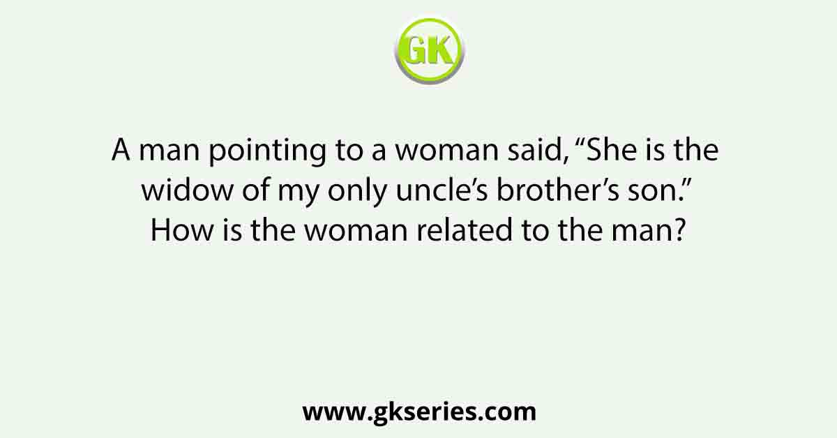 | Question | A man pointing to a woman said, “She is the widow of my only uncle’s brother’s son.” How is the woman related to the man? | |
