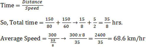 QuestionA man travels first 150 km of his journey at 80 km/hr. Due to bad weather he travels the next 150 km of his journey at 60 km/hr. What is his average speed for the first 300 km of his journey?
