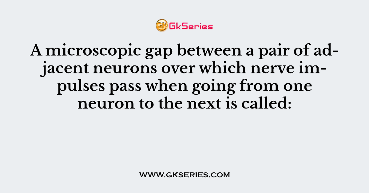 Q. A microscopic gap between a pair of adjacent neurons over which nerve impulses pass when going from one neuron to the next is called: