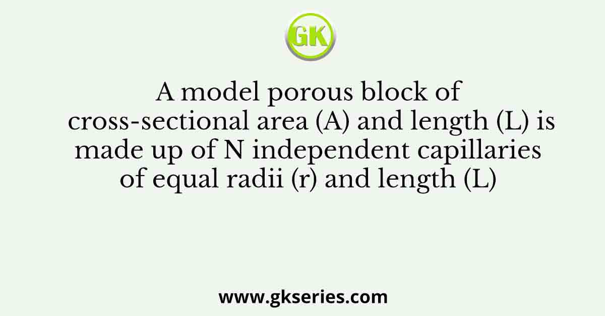 A model porous block of cross-sectional area (A) and length (L) is made up of N independent capillaries of equal radii (r) and length (L)