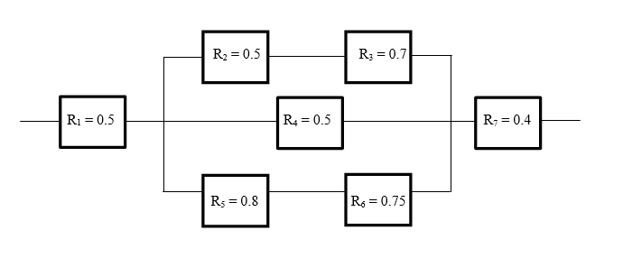 A monitoring system has seven components. The reliability of each component is shown in the figure