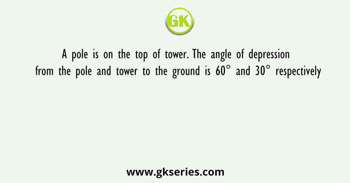A pole is on the top of tower. The angle of depression from the pole and tower to the ground is 60° and 30° respectively