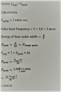 Q. A pulsed laser emits rectangular pulses of width 1 nanosecond at a repetition rate of 1 kHz. If the average power output is 1 mW, the average power over a single pulse duration, in watts, is