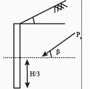 (A) Pa acts at a height H/2 from the base of the wall and at an angle b with the horizontal