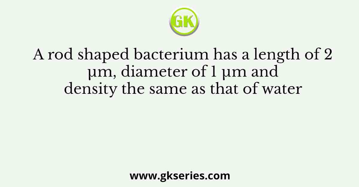A rod shaped bacterium has a length of 2 µm, diameter of 1 µm and density the same as that of water