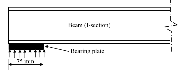 Q. A rolled I-section beam is supported on a 75 mm wide bearing plate as shown in the figure. Thicknesses of flange and web of the I-section are 20 mm and 8 mm, respectively. Root radius of the I-section is 10 mm. Assume: material yield stress, ๐๐ฆ = 250 ๐๐๐ and partial safety factor for material, ๐พ๐๐ = 1.10.