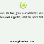 A sentence has been given in Active/Passive voice. Out of the four alternatives suggested, select one which best expresses the same sentence in passive/active Voice.
