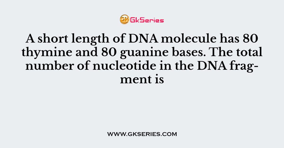 Q. A short length of DNA molecule has 80 thymine and 80 guanine bases. The total number of nucleotide in the DNA fragment is
