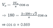 Q. A single-phase fully-controlled thyristor converter is used to obtain an average voltage of 180 V with 10 A constant current to feed a DC load. It is fed from single-phase AC supply of 230 V, 50 Hz. Neglect the source impedance. The power factor (round off to two decimal places) of AC mains is