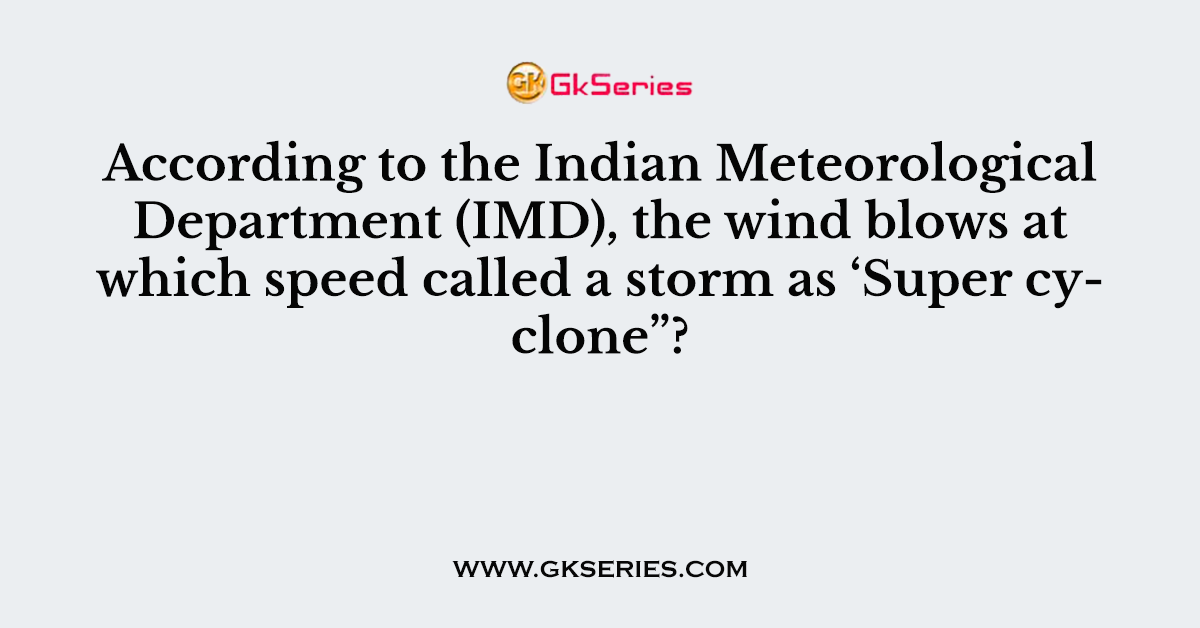 Q. According to the Indian Meteorological Department (IMD), the wind blows at which speed called a storm as ‘Super cyclone”?