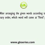 After arranging the given words according to dictionary order, which word will come at ‘Third’ position?