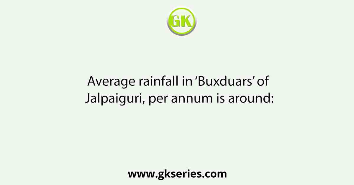 | Question | Average rainfall in ‘Buxduars’ of Jalpaiguri, per annum is around: | |