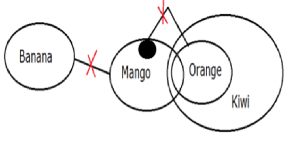 A. Few Mangos are Banana. All Kiwis are Orange. Only a few Orange is Mango.
