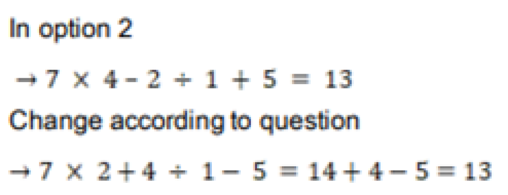 B. 7 × 4 – 2 ÷ 1 + 5 = 13