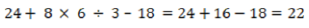 D. 24 × 8 + 6 ÷ 3 – 18 = 22