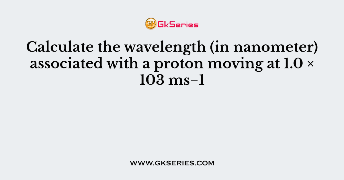 Q. Calculate the wavelength (in nanometer) associated with a proton moving at 1.0 × 103 ms−1