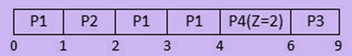 At this point P4 arrives with burst ‘Z’ & P3 is in queue with burst 3.