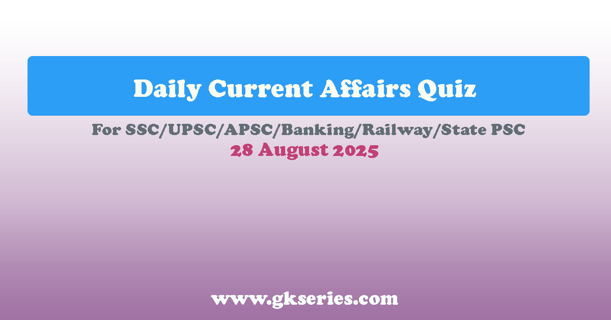 Daily Quiz on Current Affairs 28 August 2025 is very important for Competitive Exams like SSC, Railway, RRB, Banking, IBPS, PSC, UPSC, etc. Our Gkseries team have composed these Current Affairs Quizzes from Newspapers like The Hindu and other competitive magazines.