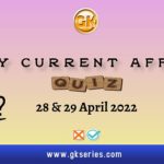 Daily Quiz on Current Affairs 28 & 29 April 2022 is very important for Competitive Exams like SSC, Railway, RRB, Banking, IBPS, PSC, UPSC, etc. Our Gkseries team have composed these Current Affairs Quizzes from Newspapers like The Hindu and other competitive magazines.