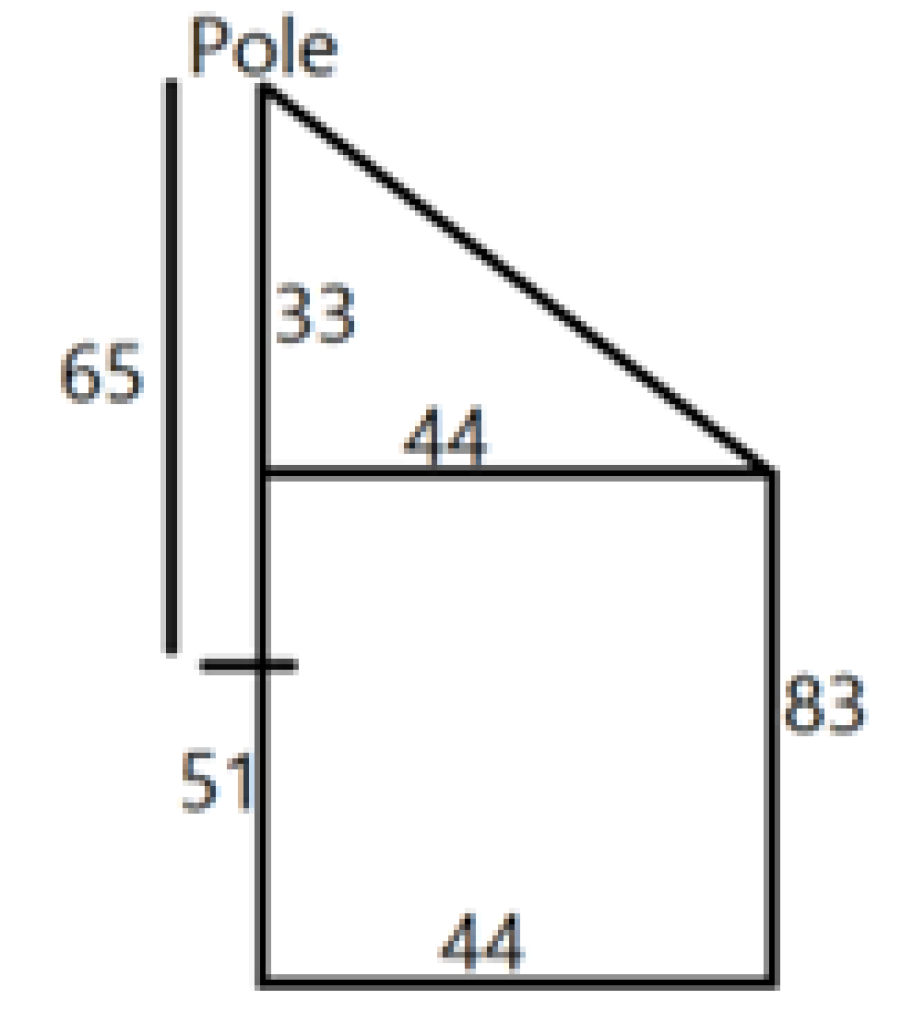 Deepika departs from her home and walks 51 m towards the south and then turns left and walks 44 m. Now she turns left again and walks 83 m. How far is she from a pole that is exactly 65 m north from her home?