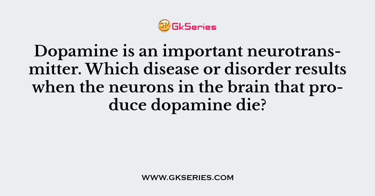 Q. Dopamine is an important neurotransmitter. Which disease or disorder results when the neurons in the brain that produce dopamine die?