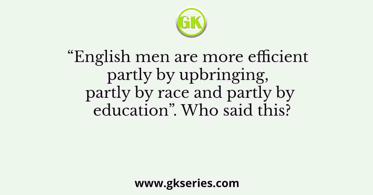 Q. “English men are more efficient partly by upbringing, partly by race and partly by education”. Who said this?