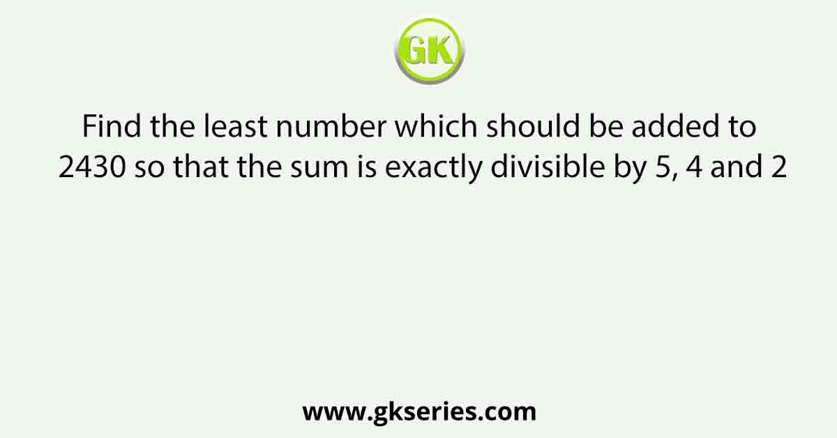 | Question | Find the least number which should be added to 2430 so that the sum is exactly divisible by 5, 4 and 2 | |