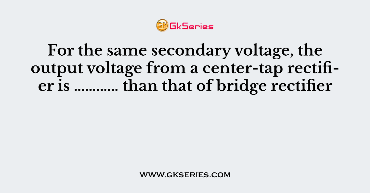 Q. For the same secondary voltage, the output voltage from a center-tap rectifier is ………… than that of bridge rectifier