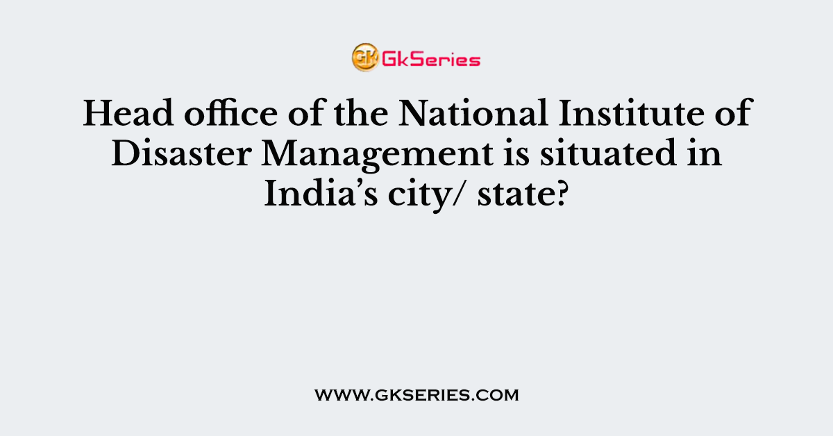 Q. Head office of the National Institute of Disaster Management is situated in India’s city/ state?