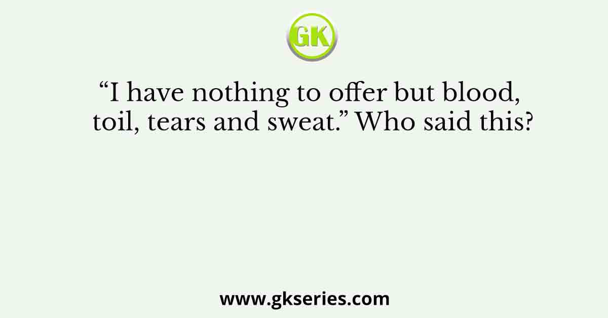 Explanation: The quote “I have nothing to offer but blood, toil, tears, and sweat” was said by (a) Winston Churchill.