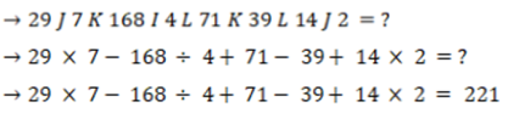 29 J 7 K 168 I 4 L 71 K 39 L 14 J 2 = ?