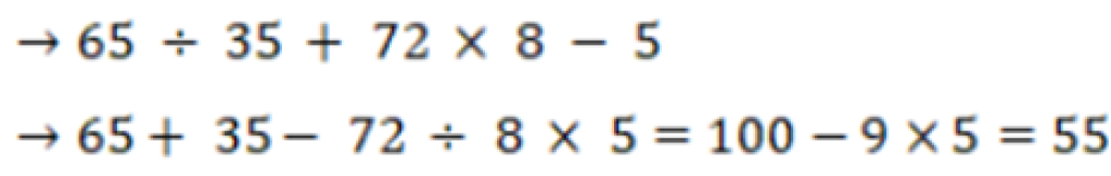 65 ÷ 35 + 72 × 8 – 5