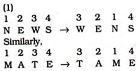 | Question | If ‘NEWS’ is written as ‘WENS’ then how ‘MATE’ will be written in this code? | |