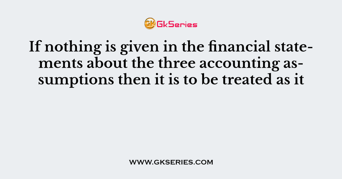 Q. If nothing is given in the financial statements about the three accounting assumptions then it is to be treated as it