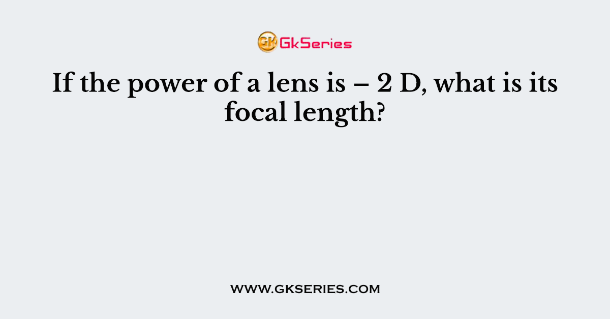 Q. If the power of a lens is – 2 D, what is its focal length?