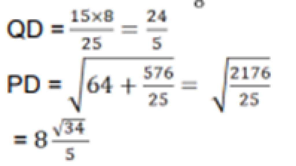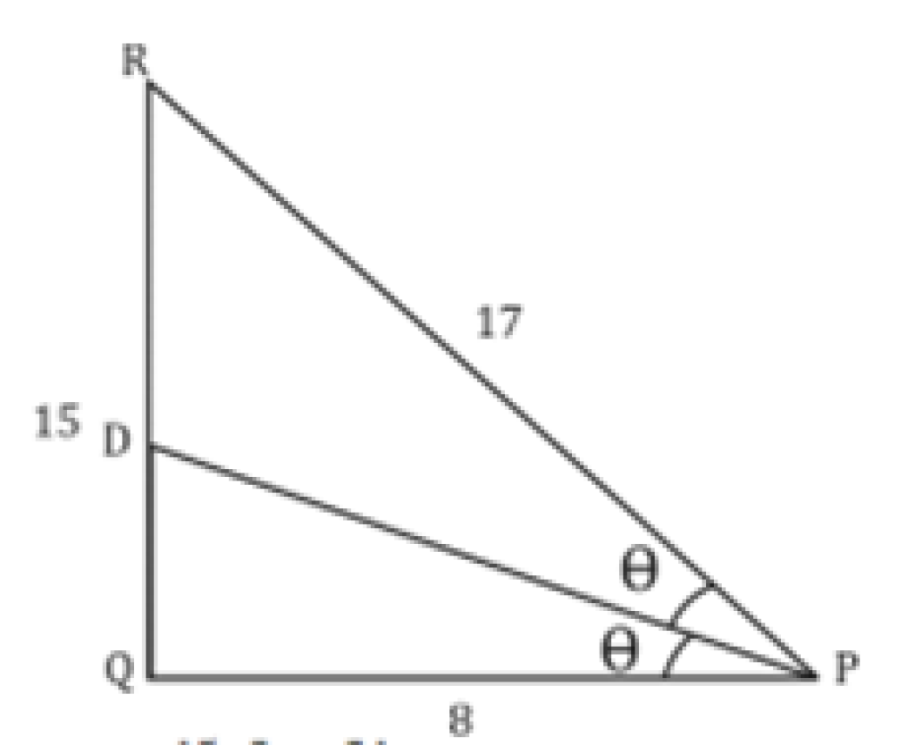 In ∆ PQR, Q= 90°, PQ = 8 cm and QR = 15 cm. The bisector of P of meets QR at D. What is the length of PD?