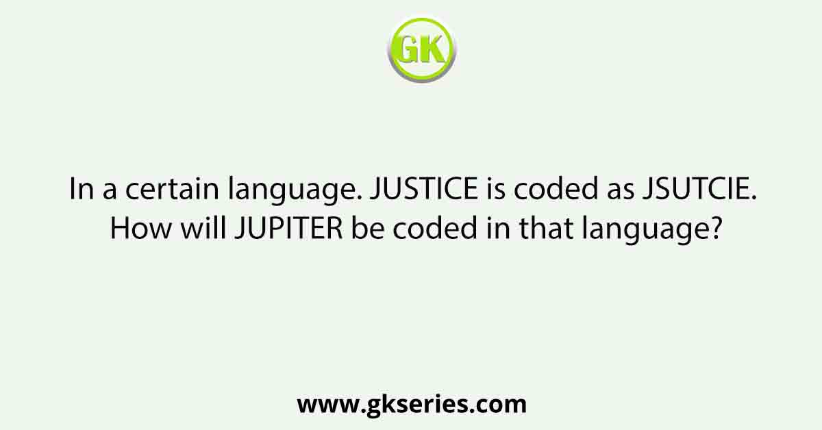 In a certain language. JUSTICE is coded as JSUTCIE. How will JUPITER be coded in that language?