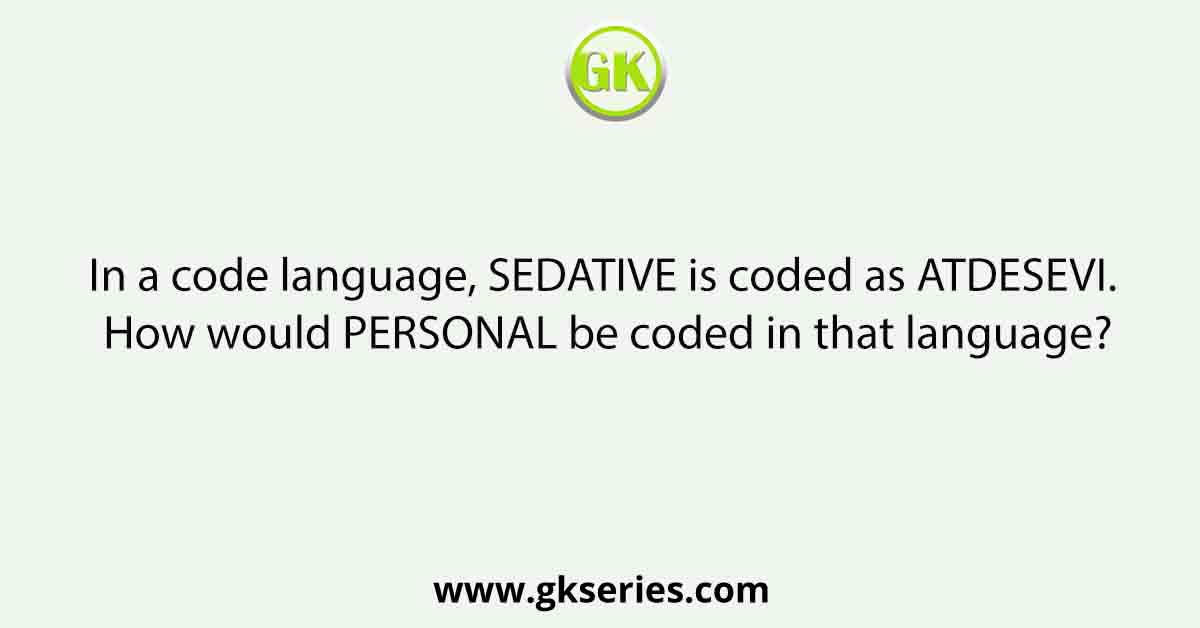 | Question | In a code language, SEDATIVE is coded as ATDESEVI. How would PERSONAL be coded in that language? | |