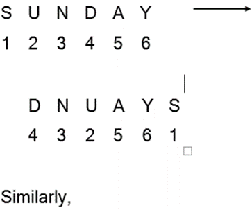 | Question | In a code language, SUNDAY is written as DNUAYS. How will MOTHER be written as in that language? | |