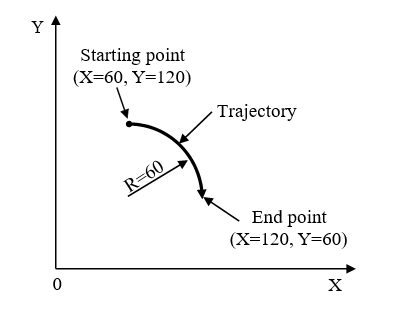 Ans: G02 X 120.0 Y 60.0 R 60.0