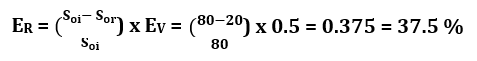 Q. In an oil reservoir, the residual oil saturation in the volume flooded with polymer solution is 20%. The initial water saturation is 20%. The volumetric sweep efficiency is 50%. The maximum possible recovery factor for the reservoir is _______% (round off to 1 decimal place).
