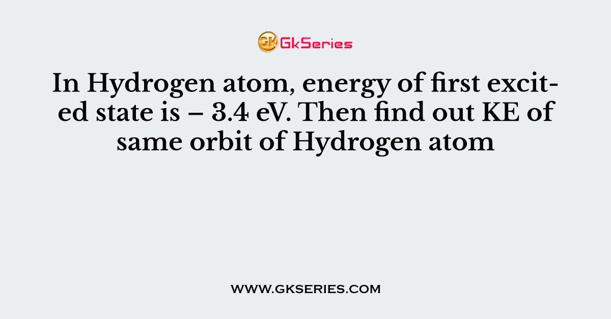 Q. In Hydrogen atom, energy of first excited state is – 3.4 eV. Then find out KE of same orbit of Hydrogen atom