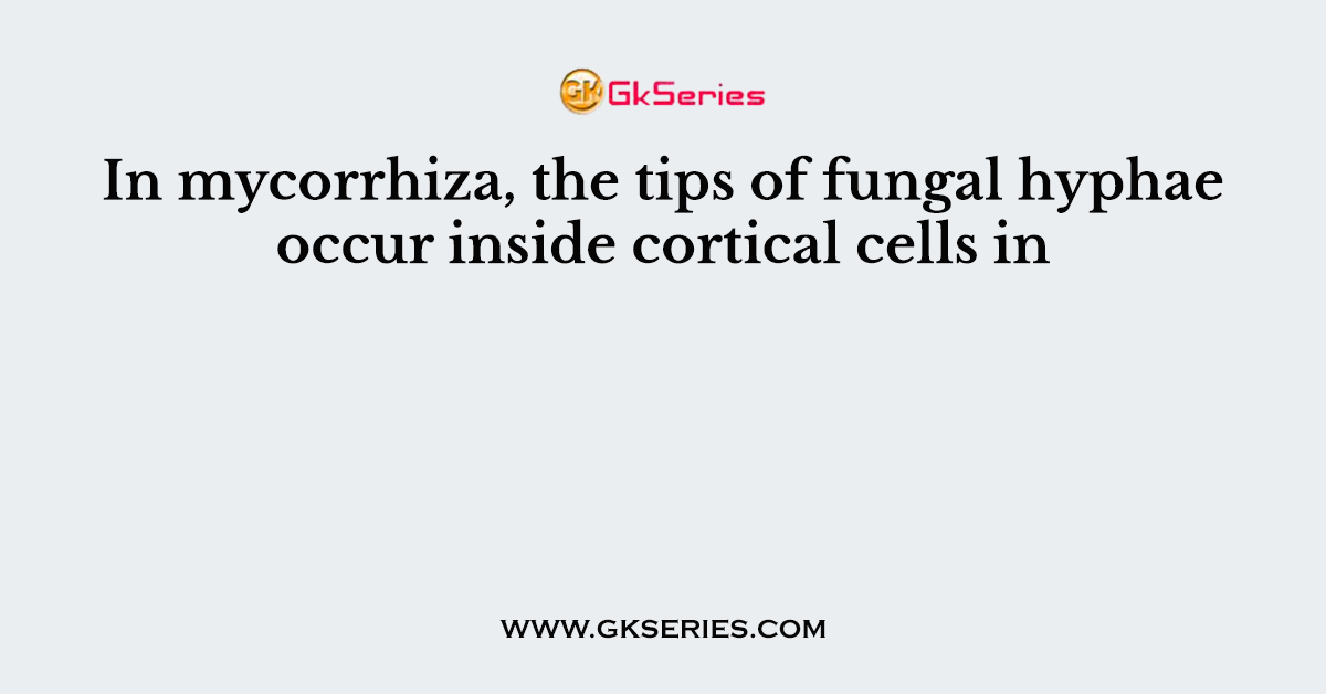 Q. In mycorrhiza, the tips of fungal hyphae occur inside cortical cells in