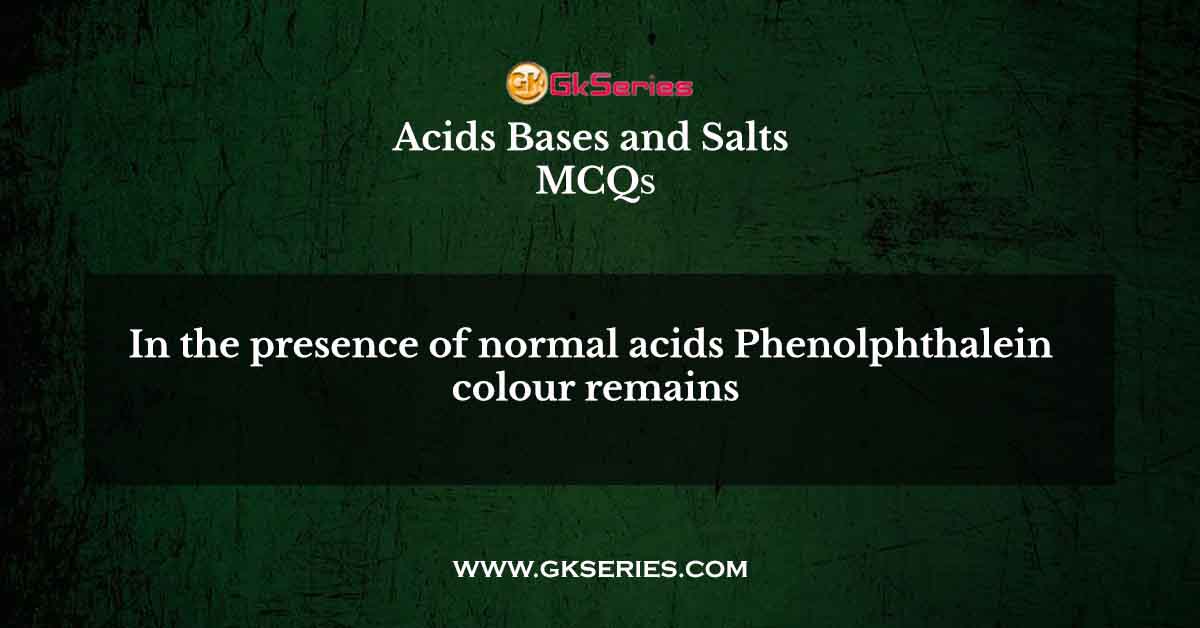 Q. In the presence of normal acids, Phenolphthalein colour remains