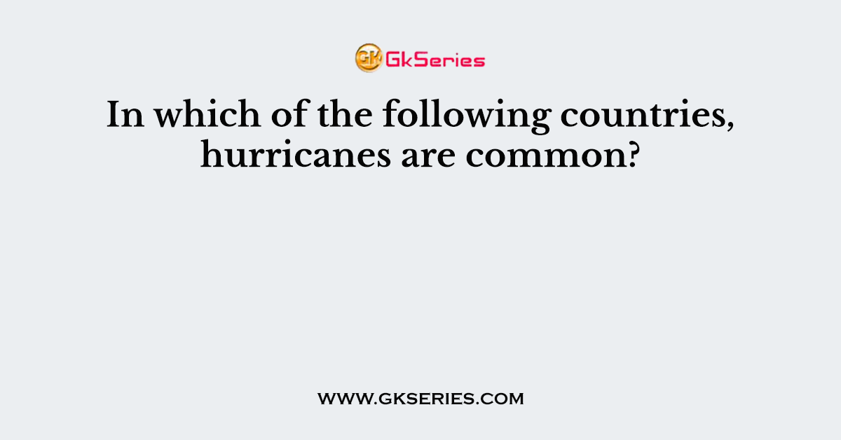 Home ยป In which of the following countries, hurricanes are common? Natural Disasters MCQs In which of the following countries, hurricanes are common? January 29, 2022 115 Views Q. In which of the following countries, hurricanes are common? A. India B. Sri Lanka C. Australia D. USA Answer: USA