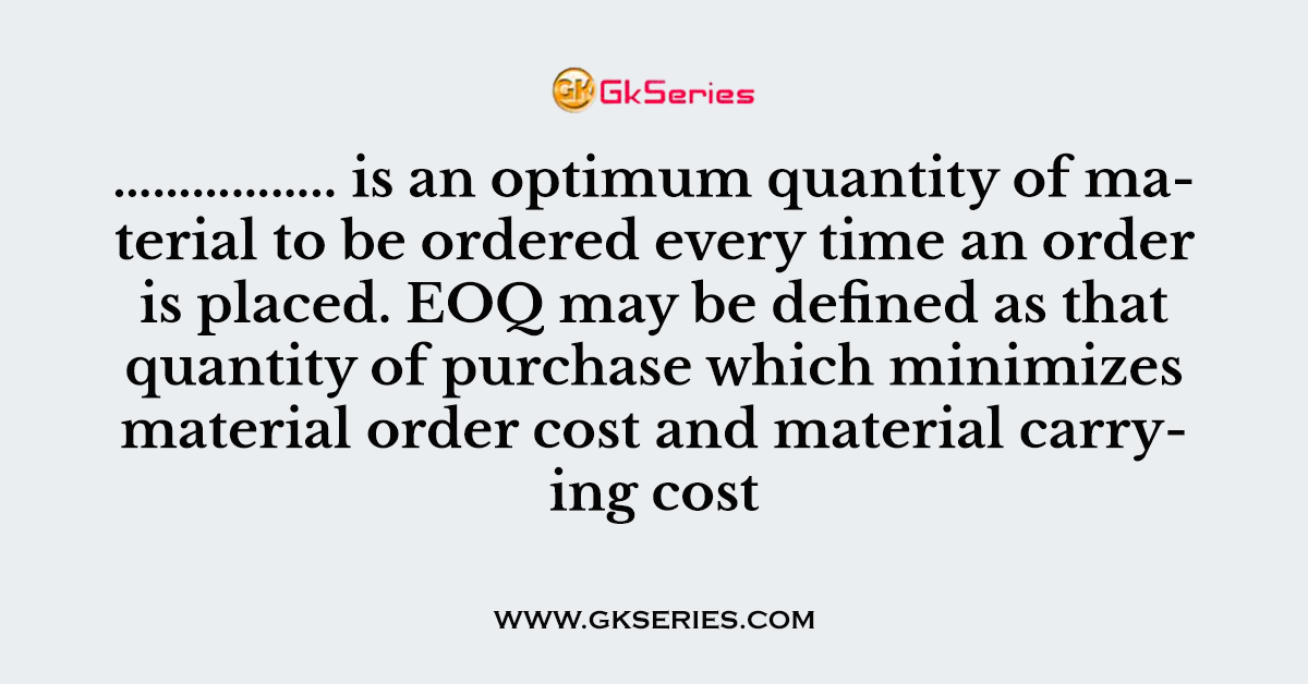 Q. …………….. is an optimum quantity of material to be ordered every time an order is placed. EOQ may be defined as that quantity of purchase which minimizes material order cost and material carrying cost